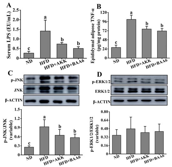 2.4. BAA6 Reduced Serum LPS and Inflammatory Cytokines in Fat Tissues of Obese Mice