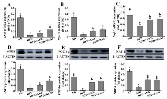 2.5. BAA6 Increased Endothelial Nitric Oxide Synthase (eNOS) Expression and Mitochondrial Biogenesis in Fat Tissues of Obese Mice