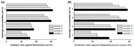 | PVA/carboxymethyl chitosan (CM)-chitosan hydrogels | Electron beam rosslinking at room temperature | * mechanical properties and swelling degree improved after adding CM-chitosan * considerable antibacterial activity against E. coli for a low CM-chitosan content | Antibacterial activity | [224] |