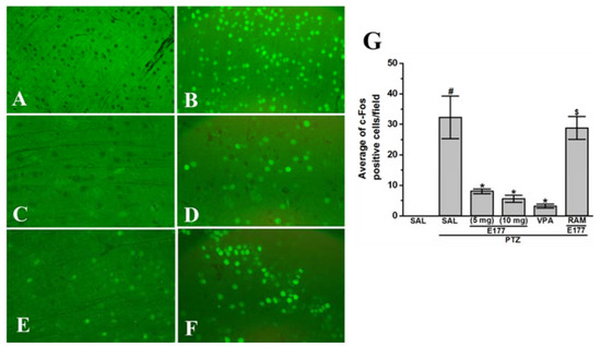 - Szyndler, J.; Maciejak, P.; Turzynska, D.; Sobolewska, A.; Taracha, E.; Skorzewska, A.; Lehner, M.; Bidzinski, A.; Hamed, A.; Wislowska-Stanek, A.; et al. Mapping of c-Fos expression in the rat brain during the evolution of pentylenetetrazol-kindled seizures. Epilepsy Behav. 2009, 16, 216–224. [Google Scholar] [CrossRef]