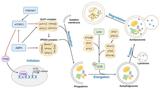- Kim, J.; Kim, Y.C.; Fang, C.; Russell, R.C.; Kim, J.H.; Fan, W.; Liu, R.; Zhong, Q.; Guan, K.L. Differential regulation of distinct Vps34 complexes by AMPK in nutrient stress and autophagy. Cell 2013, 152, 290–303. [Google Scholar] [CrossRef]