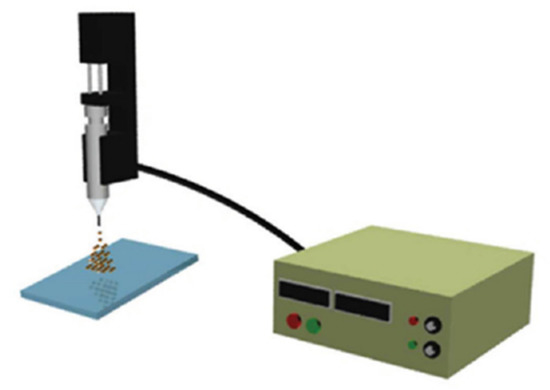 Scheme of the electrospray deposition system to synthesize gliadin-based nanoparticles. Reprinted with permission from [57]; copyright (2012) American Chemical Society.
