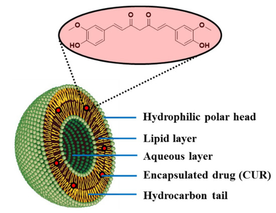 Schematic representation of the inner structure of a liposome drug delivery system with encapsulated CUR.