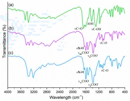 FTIR spectra of pABAH (a), HEEA-pABA (b) and HDEEA-pABA (c).