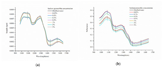 The average spectra with standard deviation of fresh-cut potato slices immersed in different sodium pyrosulfite solution collected by (a) portable NIR spectrometer and (b) NIR-HSI system.
