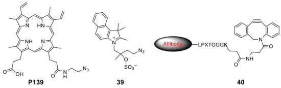 - Amirshaghaghi, A.; Altun, B.; Nwe, K.; Yan, L.; Stein, J.M.; Cheng, Z.; Tsourkas, A. Site-Specific Labeling of Cyanine and Porphyrin Dye-Stabilized Nanoemulsions with Affibodies for Cellular Targeting. J. Am. Chem. Soc. 2018, 140, 13550–13553. [Google Scholar] [CrossRef]