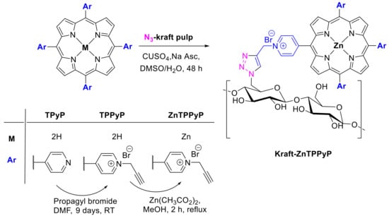 - Khaldi, Z.; Takeki, J.K.N.; Ouk, T.-S.; Lucas, R.; Zerrouki, R. Synthesis and photo-bactericidal properties of a cationic porphyrin grafted onto kraft pulp fibers. J. Porphyr. Phthalocyanines 2019, 23, 489–496. [Google Scholar] [CrossRef]