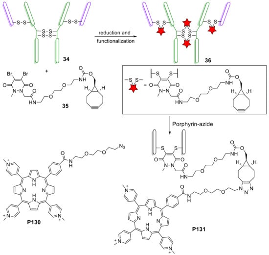 - Maruani, A.; Savoie, H.; Bryden, F.; Caddick, S.; Boyle, R.; Chudasama, V. Site-selective multi-porphyrin attachment enables the formation of a next-generation antibody-based photodynamic therapeutic. Chem. Commun. 2015, 51, 15304–15307. [Google Scholar] [CrossRef]