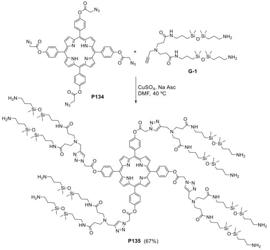 - Dai, X.-H.; Yang, W.-H.; Yan, W.-L.; Hu, J.-M.; Dai, Y.-R.; Pan, J.-M.; Yan, Y.-S. Porphyrin-cored dendrimers consisting of novel siloxane-poly (amido amine) dendron-like arms: Synthesis, characterization, and photophysical properties. Colloids Surf. A 2017, 520, 222–230. [Google Scholar] [CrossRef]