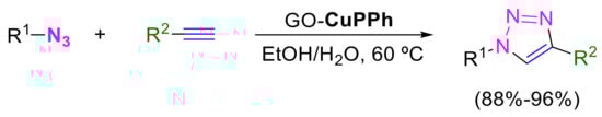 - Khojastehnezhad, A.; Bakavoli, M.; Javid, A.; Khakzad Siuki, M.M.; Shahidzadeh, M. Synthesis, characterization, and investigation of catalytic activity of copper(II) porphyrin graphene oxide for azide–alkyne cycloaddition. Res. Chem. Intermed. 2019, 45, 4473–4485. [Google Scholar] [CrossRef]