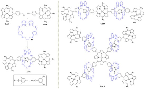 - Buckley, H.L.; Rubin, L.K.; Chromiński, M.; McNicholas, B.J.; Tsen, K.H.Y.; Gryko, D.T.; Arnold, J. Corroles That “Click”: Modular Synthesis of Azido- and Propargyl-Functionalized Metallocorrole Complexes and Convergent Synthesis of a Bis-corrole Scaffold. Inorg. Chem. 2014, 53, 7941–7950. [Google Scholar] [CrossRef]