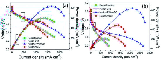 - Lee, D.C.; Yang, H.N.; Park, S.H.; Kim, W.J. Nafion/graphene oxide composite membranes for low humidifying polymer electrolyte membrane fuel cell. J. Membr. Sci. 2014, 452, 20–28. [Google Scholar] [CrossRef]