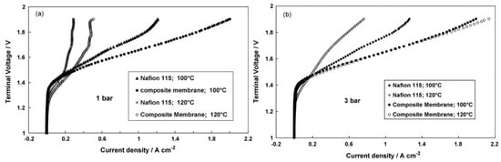 - Antonucci, V.; Di Blasi, A.; Baglio, V.; Ornelas, R.; Matteucci, F.; Ledesma-Garcia, J.; Arriaga, L.G.; Aricò, A.S. High temperature operation of a composite membrane-based solid polymer electrolyte water electrolyser. Electrochim. Acta 2008, 53, 7350–7356. [Google Scholar] [CrossRef]