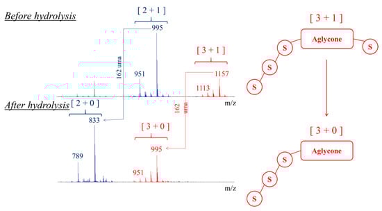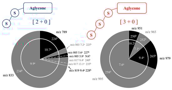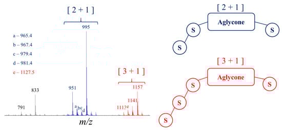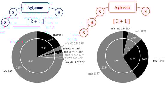 | Composition | m/z [M + Na]+ | Δ(m/z) (ppm) | R1 | R2 | Aglycone | R3 | RT (min) | CCS (Ų) [M + Na]+ | CCS (Ų) [M + H]+ | Molar Proportion (%) | |