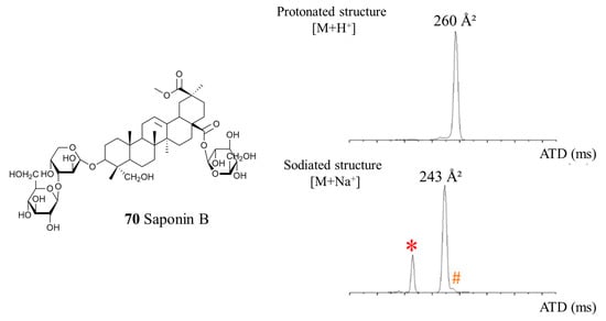 - Decroo, C.; Colson, E.; Lemaur, V.; Caulier, G.; De Winter, J.; Cabrera-Barjas, G.; Gerbaux, P. Ion mobility mass spectrometry of saponin ions. Rapid Commun. Mass Spectrom. 2018, 33, 1–12. [Google Scholar]