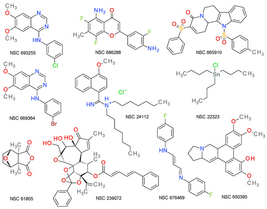 - National Cancer Institute. NCI DTP Data—Compound Sets. Available online: https://wiki.nci.nih.gov/display/ncidtpdata/compound+sets (accessed on 25 August 2019).