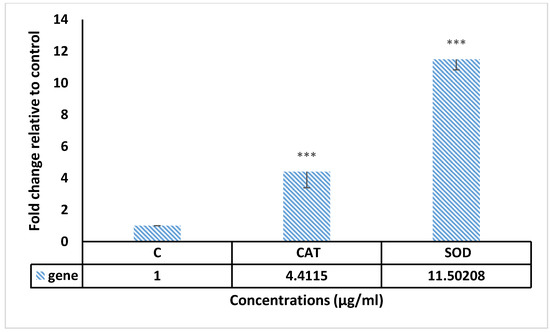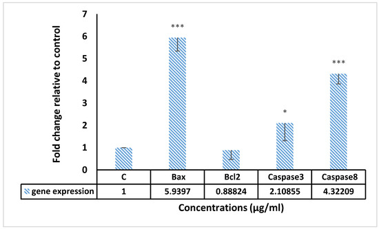 6 cells/well) that were treated with 15 µg/mL of F13b1/PV-EA for 24 h, using the manufacturer’s instructions for RNA extraction. The mRNA was transcribed in reverse to cDNA by adhering to the manufacturer’s protocol using the Advantage RT-PCR kit. cDNA was amplified via a real time and sybr green kit.