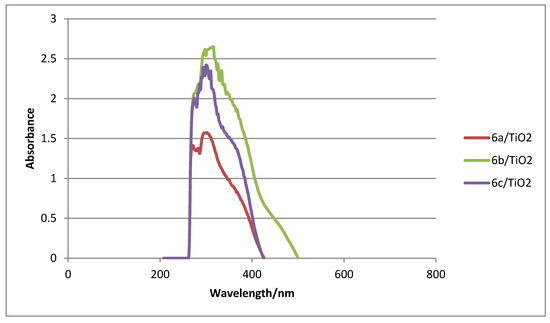 UV-Vis absorption spectra of dyes (6a–c) adsorbed on nanoporous TiO2.