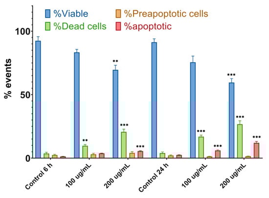 - Rieger, A.M.; Nelson, K.L.; Konowalchuk, J.D.; Barreda, D.R. Modified Annexin V/Propidium Iodide Apoptosis Assay for Accurate Assessment of Cell Death. J. Vis. Exp. 2011, 50, e2597. [Google Scholar] [CrossRef]