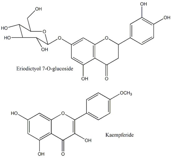 The aerial parts of Luffa cylindrica were found to be cytotoxic against MCF-7 and Hep-2 cell lines and the percentage cell viability were 83 and 120, respectively after MTT assay [22]. Another study reported the cytotoxicity of L. cylindrica against BT-474, MDA-MB-231, and HepG2 cells, with the IC50 value of 329.2 µg/mL against HepG2 [31]. The major cytotoxic compounds were kaempferide, eriodictyol 7-O-glucoside, and apigenin 7-O-glucouronide (Figure 3), which acted on caspases 3 and 8 [32].