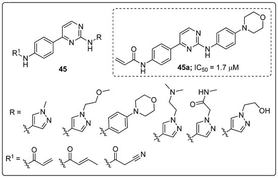 - Shu, L.; Chen, C.; Huan, X.; Huang, H.; Wang, M.; Zhang, J.; Yan, Y.; Liu, J.; Zhang, T.; Zhang, D. Design, synthesis, and pharmacological evaluation of 4- or 6-phenylpyrimidine derivatives as novel and selective Janus kinase 3 inhibitors. Eur. J. Med. Chem. 2020, 191, 112148. [Google Scholar] [CrossRef]