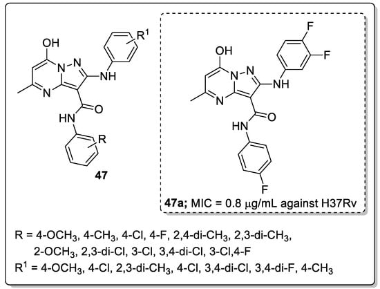 - Modi, P.; Patel, S.; Chhabria, M. Structure-based design, synthesis and biological evaluation of a newer series of pyrazolo[1,5-a]pyrimidine analogues as potential anti-tubercular agents. Bioorg. Chem. 2019, 87, 240–251. [Google Scholar] [CrossRef] [PubMed]