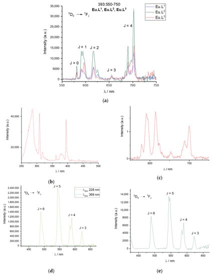 - Tropiano, M.; Blackburn, O.A.; Tilney, J.A.; Hill, L.R.; Just Sørensen, T.; Faulkner, S. Exploring the effect of remote substituents and solution structure on the luminescence of three lanthanide complexes. J. Lumin. 2015, 167, 296–304. [Google Scholar] [CrossRef]