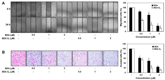 2.2. BEA and BEA G1 Inhibit the Migration of A375SM Melanoma Cells