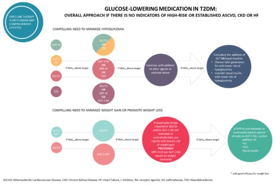- Buse, J.B.; Wexler, D.J.; Tsapas, A.; Rossing, P.; Mingrone, G.; Mathieu, C.; D’Alessio, D.A.; Davies, M.J. 2019 update to: Management of hyperglycemia in type 2 diabetes, 2018. A consensus report by the American Diabetes Association (ADA) and the European Association for the Study of Diabetes (EASD). Diabetes Care 2020, 43, 487–493. [Google Scholar] [CrossRef]