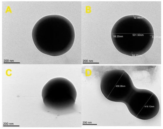 Nanoparticles (NPs) were initially defined as structures with one or more dimensions in the range of 1–100 nm [1]. In practice, an increasing number of published works have extended the meaning of NPs into the submicron range up to 1000 nm. NPs with defined properties, i.e., size, shape, and biocompatibility nowadays have a higher impact on daily life [2,3,4,5]. One of the most interesting types of NP systems is the one based on a core–shell (CS) structure [6,7,8,9]. CS systems contain a core and shell/shells made from different materials [1,10,11,12,13]. NPs are efficient delivery systems compared to other carrier systems. The main advantage of NPs is their submicron size. Additionally, NPs can be easily manipulated in size and surface characteristics. They remain stable during long term storage and are able to incorporate both hydrophilic and hydrophobic molecules. Their high carrier capacity is combined with efficient carrier protection sustaining its activity [14]. On the other hand, there are various NP systems with the same basic material used in the whole particle; however, the layer-by-layer production—this process is also called “seed-growth” [15,16]—allows for the incorporation of different agents into chosen layers, e.g., fluorophores.