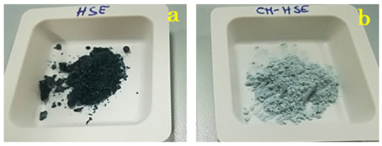 Macroscopic appearance of HSE raw material (a) and CM-HSE(b).