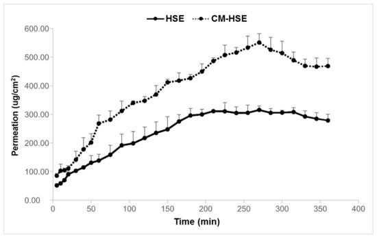 Results of in vitro permeation study of HSE and CM-HSE through Franz Cells.