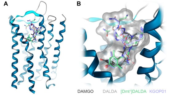 2.2. In Silico Investigation of DALDA, [Dmt1]DALDA, and KGOP01 Binding to the MOR