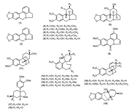 Natural products represent an interesting source of bioactive compounds and have led, directly or indirectly, to the development of about two thirds of the new medicines approved in recent years [1]. Plants are widely used in folk medicine, and plant extracts have long been tested in screening programs in pharmaceutical companies and university institutes as sources of new commercially viable drugs [2]. Alkaloids—secondary metabolites found mainly in plants—have an important role in drug development because of their structural diversity [1,3,4].