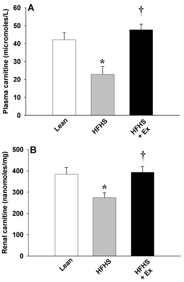 Upadhyay A, Al-Nakkash L, Broderick TL. Effects of Exercise Training on Renal Carnitine Biosynthesis and Uptake in the High-Fat and High-Sugar-Fed Mouse. Molecules. 2020; 25(9):2100. https://doi.org/10.3390/molecules25092100