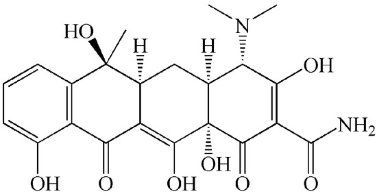 - di Cerbo, A.; Pezzuto, F.; Guidetti, G.; Canello, S.; Corsi, L. Tetracyclines: Insights and updates of their use in human and animal pathology and their potential toxicity. Open Biochem. J. 2019, 13, 1–12. [Google Scholar] [CrossRef]