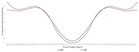 It is essential to prevent the effects of atoms outside the dihedral during scanning in order to obtain a seamless molecular mechanics scan graphic. For this purpose, all the coordinates for each step of the scan were extracted from the psi4 output file, using the awk and sed commands under wsl Ubuntu OS, and these coordinates were converted into mol2 files by using the pymol [21] molecular editing program. Later, ESP charges were added to mol2 files, and mol2 files with ESP charge were converted to GAFF atom type using the "at gaff -dr no flags of the antechamber program [20]. Oxygen atoms associated with the boron atom were changed to ob. Then, the coordinate and prmtop files for each mol2 file were obtained using the tleap program and frcmod file containing our novel parameters (the tleap impose command was unable to turn dihedrals because of the boron atom) [7]. These mentioned files were used in the paramfit program, and the MM scan was generated based on the same geometries of the quantum mechanics (QM) scan.