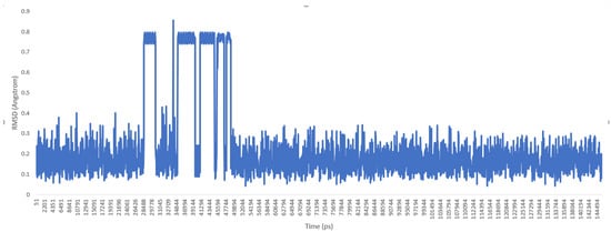 Then, the molecule was heated, and a molecular dynamics production was carried out. Trajectory files of the molecule during the production phase were loaded into the UCSF chimera program [10], and the root-mean-square deviation (RMSD) graphic was drawn (see Figure 4 and Figure 5)