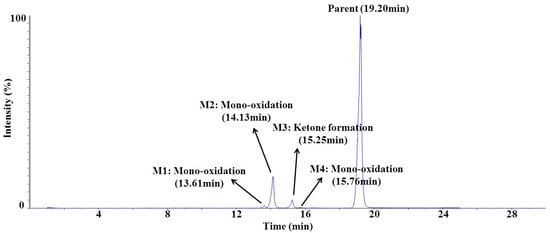 2.5. In Vitro Metabolite Identification