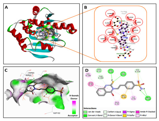 - Laskowski, R.A.; Swindells, M.B. LigPlot+: Multiple Ligand–Protein Interaction Diagrams for Drug Discovery. J. Chem. Inf. Model. 2011, 51, 2778–2786. [Google Scholar] [CrossRef] [PubMed]