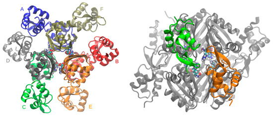 - Strawn, R.; Melichercik, M.; Green, M.; Stockner, T.; Carey, J.; Ettrich, R. Symmetric allosteric mechanism of hexameric Escherichia coli arginine repressor exploits competition between L-arginine ligands and resident arginine residues. PloS Comput. Biol. 2010, 6, e1000801. [Google Scholar] [CrossRef] [PubMed]
