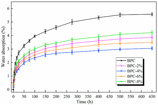 Water absorption curves of the BPCs.
