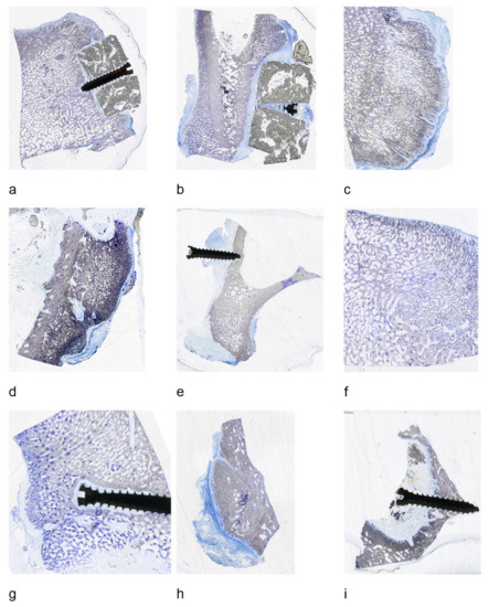 - Moest, T.; Frabschka, J.; Kesting, M.; Schmitt, C.; Frohwitter, G.; Lutz, R.; Schlegel, K.A. Osseous ingrowth in allogeneic bone blocks applied for vertical bone augmentation: A preclinical randomized controlled study. Clin. Oral Investig. 2020, 24, 2867–2879. [Google Scholar] [CrossRef] [PubMed]