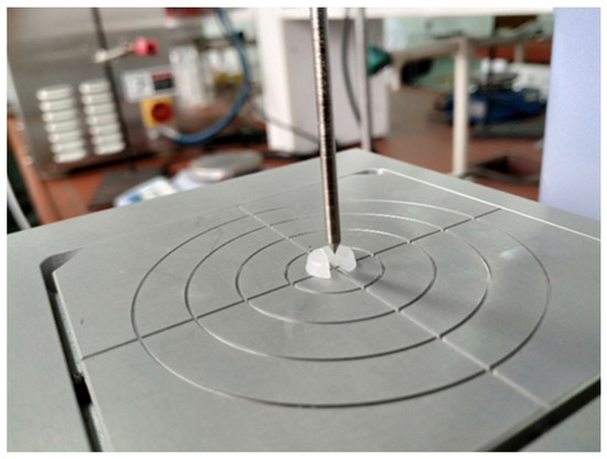 Since quality assessment guidelines for 3D-printed medicines have not been established yet, and some of the traditional testing methods are not entirely suitable for their control due to the differences in consistency and firmness in comparison with conventional solid dosage forms, alternative approaches have to be developed in order to examine and optimize 3D-printed tablets. Because all of the prepared formulations contained the same ratio of PEGDA and PEG 400, the content of water and PI was constant in all of them and all tablets were fabricated using the same printing parameters, a EZ-LX Compact Table-Top Testing Machine (Figure 3) was used to measure the penetration force, which reflects the mechanical properties of the tablets, in order to investigate the potential effect of the drug load on the hardness of the fabricated tablets.
