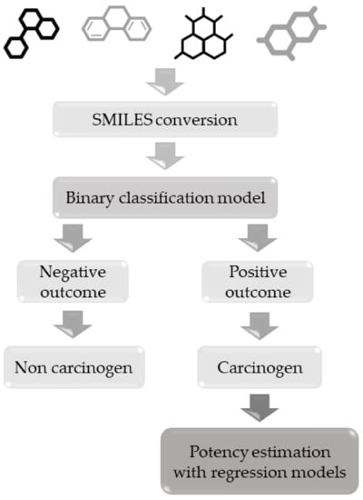 Hierarchical workflow to apply classification and regression-based models for carcinogenicity.