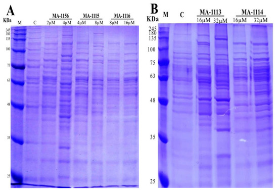 2.5. Effect of Fluoroarylbichalcophenes on S. aureus Protein Pattern