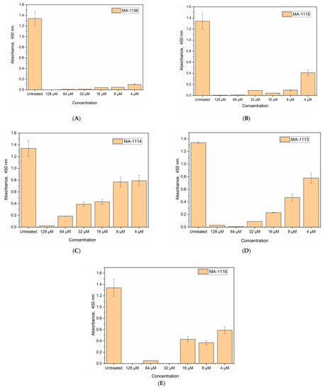 4.2. Detecting the Antimicrobial Activity of the Tested 2,2′-Bichalcophene Derivatives