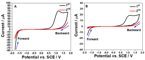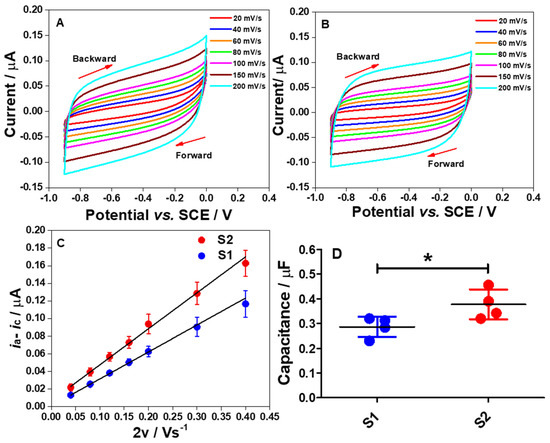 2.2. CV for S1 and S2 Electrodes in PB Solution (pH 7)