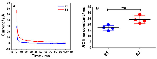 2.4. Chronoamperometric Measurements for S1 and S2 Electrodes