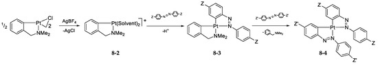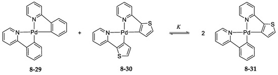 - Exchange in the Platinum Series8.1. η3-Allyls as Leaving Ligands8.2. True Exchange of Cycloplatinated Ligands8.3. Intramolecular Exchange of Cycloplatinated Ligands8.4. Pincer-Pincer Ligand Exchange in Cycloplatinated Complexes8.5. Exchange of Cyclometalated Ligands or Transcyclometalation?